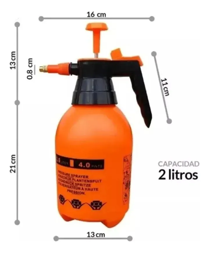 Pulverizador Rociador Jardin Plantas Plastico A Presión 2 Lt Braco