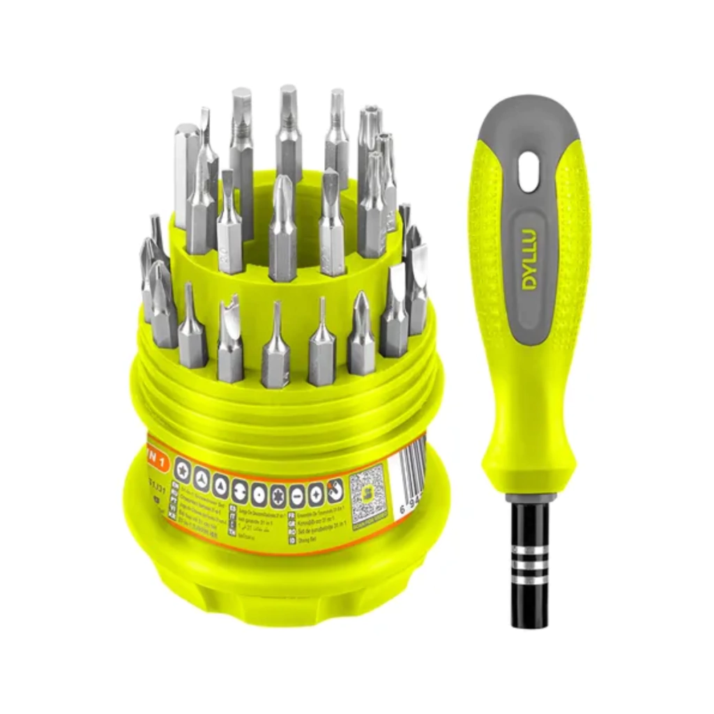 El set de destornillador 31 en 1 es una herramienta indispensable para trabajos de precisión, armado, reparación y mantenimiento en electrónica, electrodomésticos, celulares, relojería y más. Su diseño compacto y ergonómico permite transportar todas las puntas organizadas en un práctico contenedor portátil.