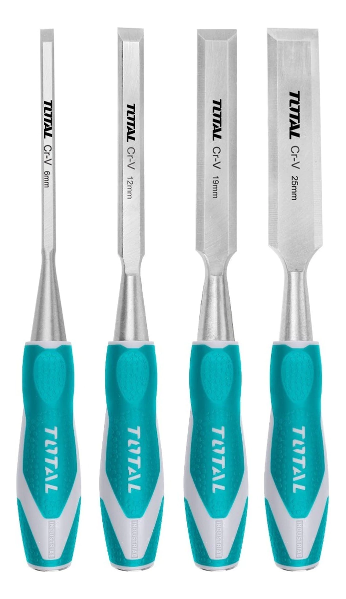 Set Juego De 4 Formones Total Tools 6 12 19 25 Mm Material Cromo Vanadio Grip De Goma Calidad Industrial Alto Rendimiento Apto Profesional