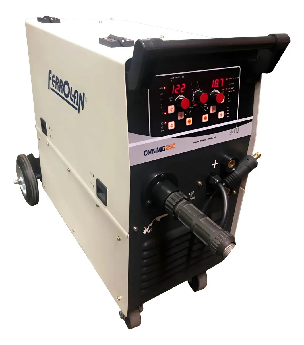 La Ferrolan OMNIMIG 250 representa la nueva generación de equipos industriales donde la potencia de 250A se combina con una facilidad de uso sin precedentes. Gracias a su función sinérgica, regular la máquina ya no es un problema: el equipo se auto-regula inteligentemente para lograr resultados óptimos en cada cordón.