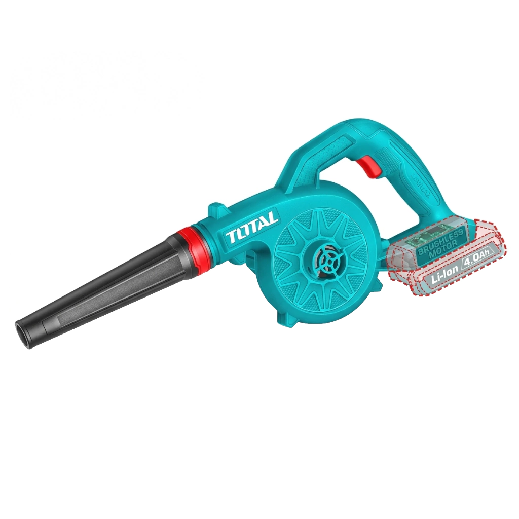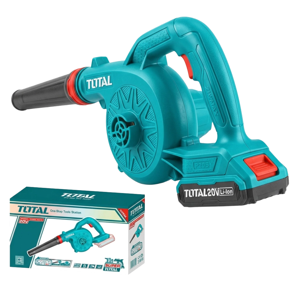 La sopladora inalámbrica TOTAL TABLI2078 es la herramienta ideal para quienes buscan mantener el orden en patios, veredas, talleres y jardines de forma ágil. Su principal ventaja es su diseño ultra ligero de apenas 1 kg, lo que permite operarla con una sola mano sin cansancio, llegando a lugares donde los cables no alcanzan.