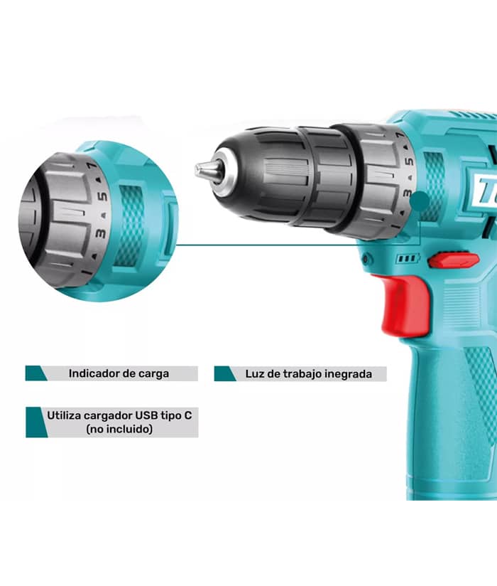 Si tenes alguna consulta sobre este Taladro Atornillador a Batería Inalámbrico 12V 10mm 20Nm sin Batería Total TDLI12428, escribinos!!!