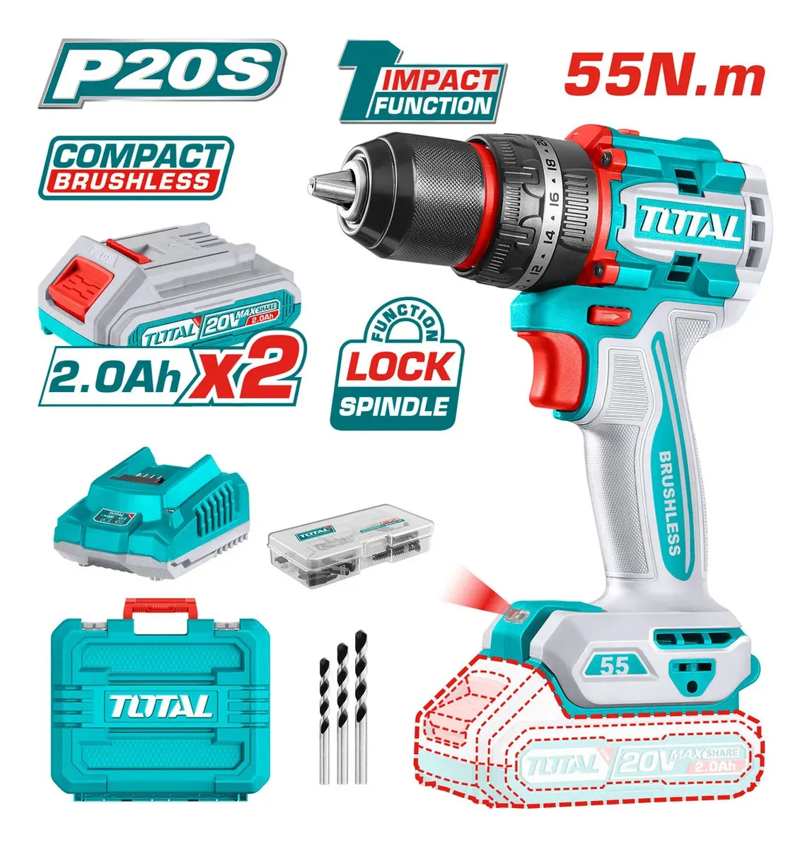 Taladro Percutor / Atornillador 20 V – Total Brushless (Motor sin carbones)